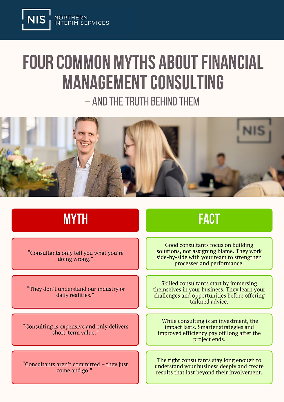 The truth: At NIS, our consultants often work with clients for months — sometimes years — becoming part of the team. This long-term approach builds trust, deep understanding, and results that last.